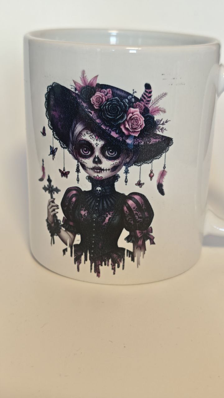 Detailreich bedruckter, weißer Keramikbecher in Standardgröße – ideal für Kaffee, Tee & Kakao. Der Sublimationsdruck ist farbintensiv, langlebig und ohne fühlbare Kanten.